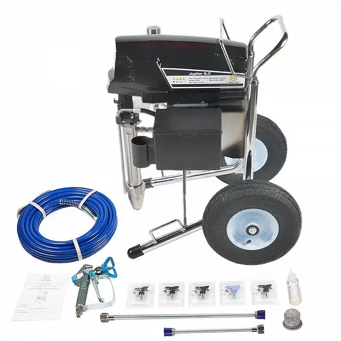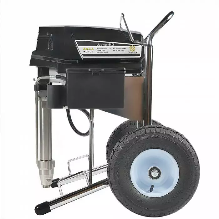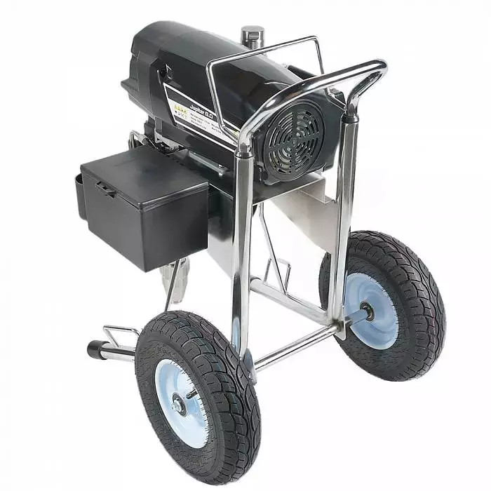 Аппарат обладает мощностью 3,5 кВт, работает под давлением 227 Бар, что обеспечивает высокое качество (равномерность) покрытия окрашиваемой поверхности распыляемым материалом. В том числе им можно наносить сложные интерьерные краски, вязкие ЛКМ, жидкие теплоизоляционные и огнезащитные материалы, однокомпонентные гидроизоляции, полимерные шпаклевки, эпоксидные материалы. Работает от розетки 220 В.