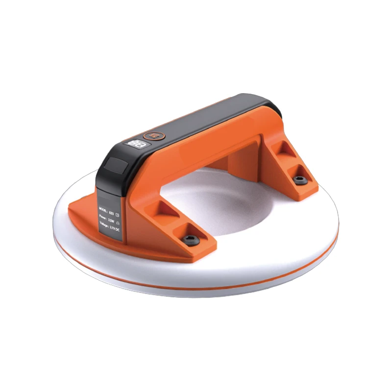 Присоска имеет диаметр 8 дюймов. Питание присоски происходит от встраиваемого аккумулятора элемента. Зарядка происходит через разъем USB Type-C