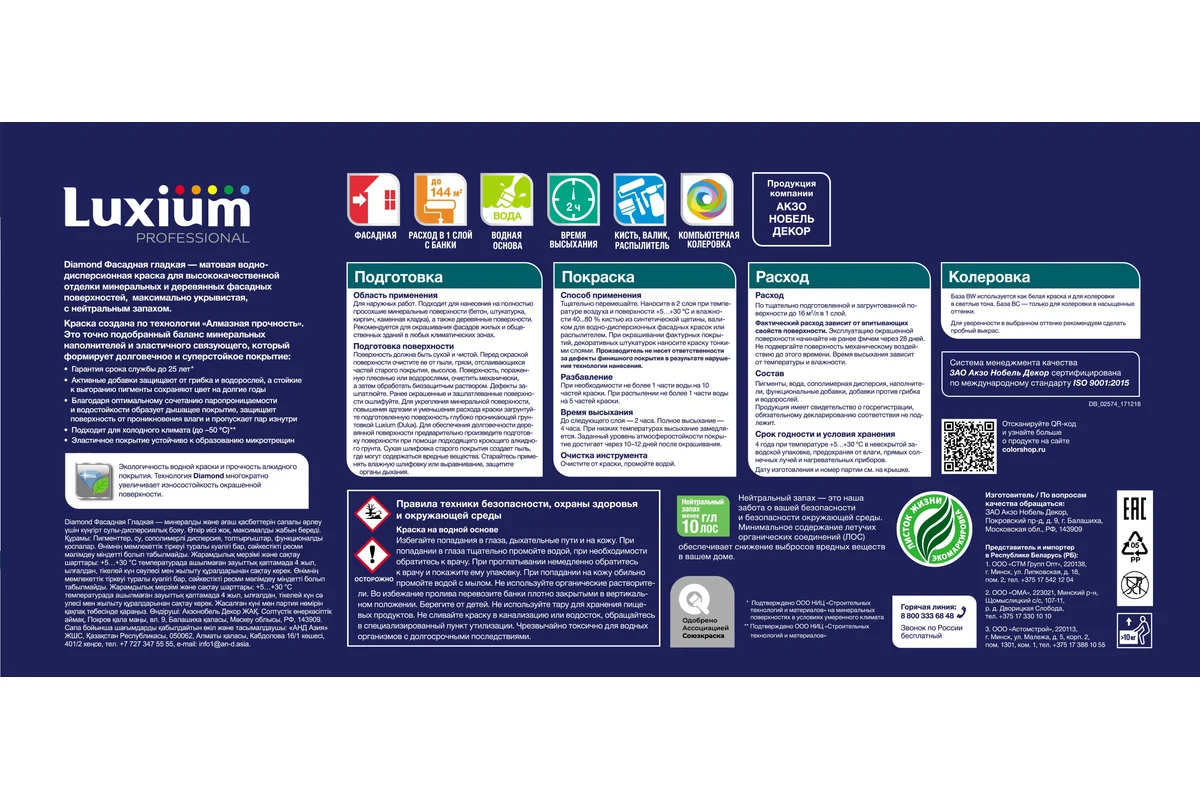 Для наружных работ. Подходит для нанесения на полностью просохшие минеральные поверхности (бетон, штукатурка, кирпич, каменная кладка), а также деревянные поверхности. Рекомендуется для окрашивания фасадов жилых и общественных зданий в любых климатических зонах.
