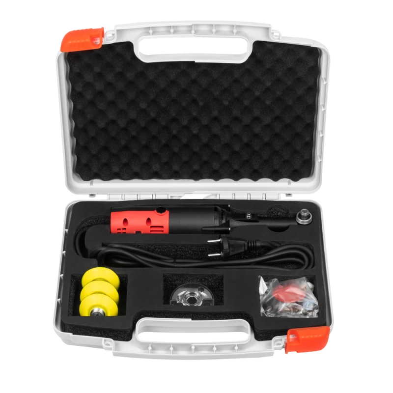 - Плавная регулировка скорости (11000-22000 об/мин): Позволяет идеально подобрать режим работы для любого материала — от грубой обработки до тончайшей полировки и деликатной гравировки.