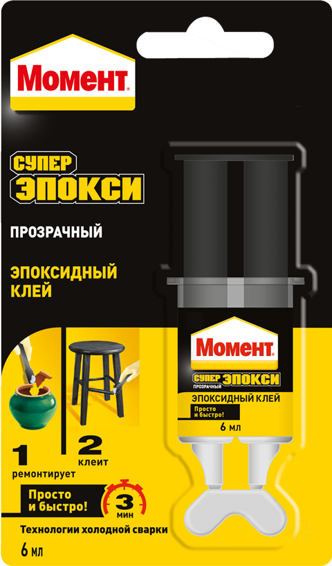 Он не расширяется и не сжимается при отверждении, устойчив к воздействию воды, масел и растворителей. Благодаря удобной упаковке в виде шприца, клей можно точно дозировать и более аккуратно и равномерно наносить на поверхность, что способствует экономичности. Может быть использован как для внутренних, так и внешних работ. После отверждения Момент Супер Эпокси Прозрачный в шприце можно окрашивать, полировать и даже сверлить!