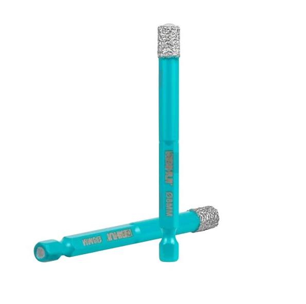 Коронка имеет глянцевую поверхность, изготовлена из высококачественной стали с рабочим краем из алмазной крошки. Легко вырезает идеально круглые отверстия без сколов, что позволяет значительно сократить время работы и трудозатраты, упрощает процесс сверления.