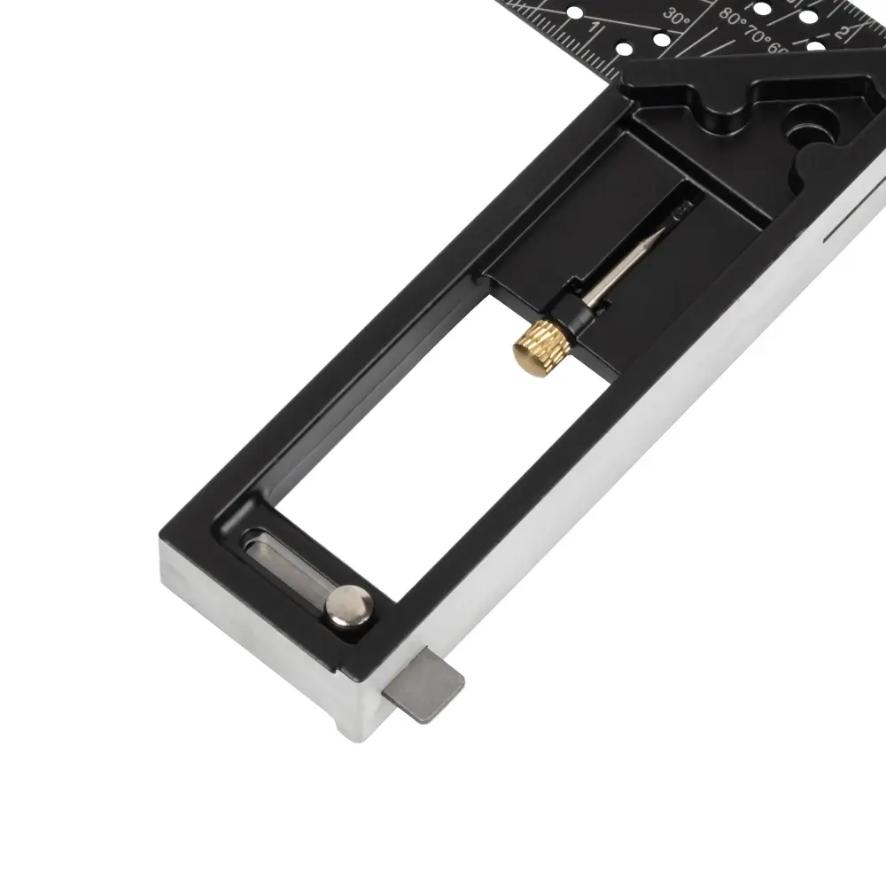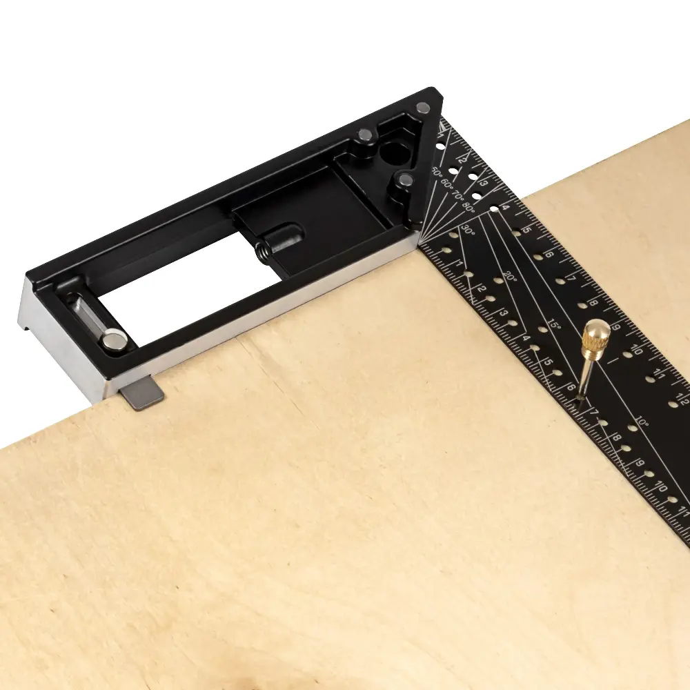 - Угольник оснащен чертилкой для нанесения рисок на размечаемую поверхность.