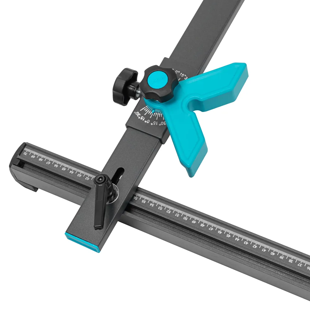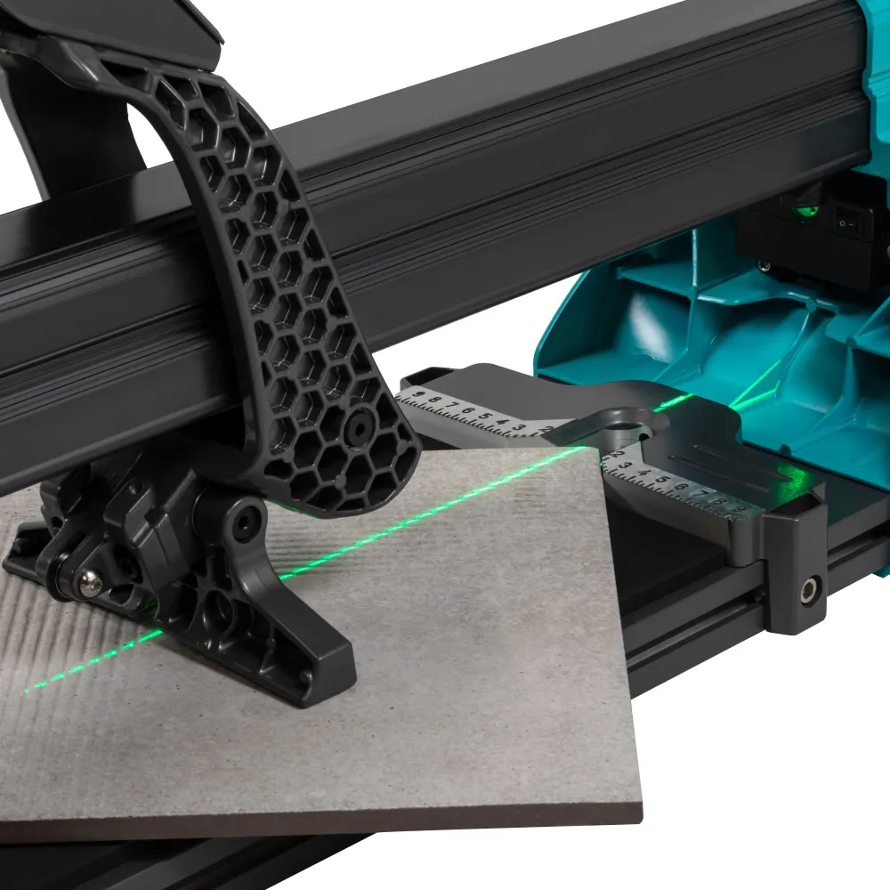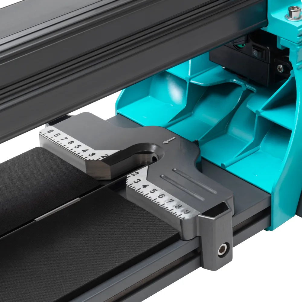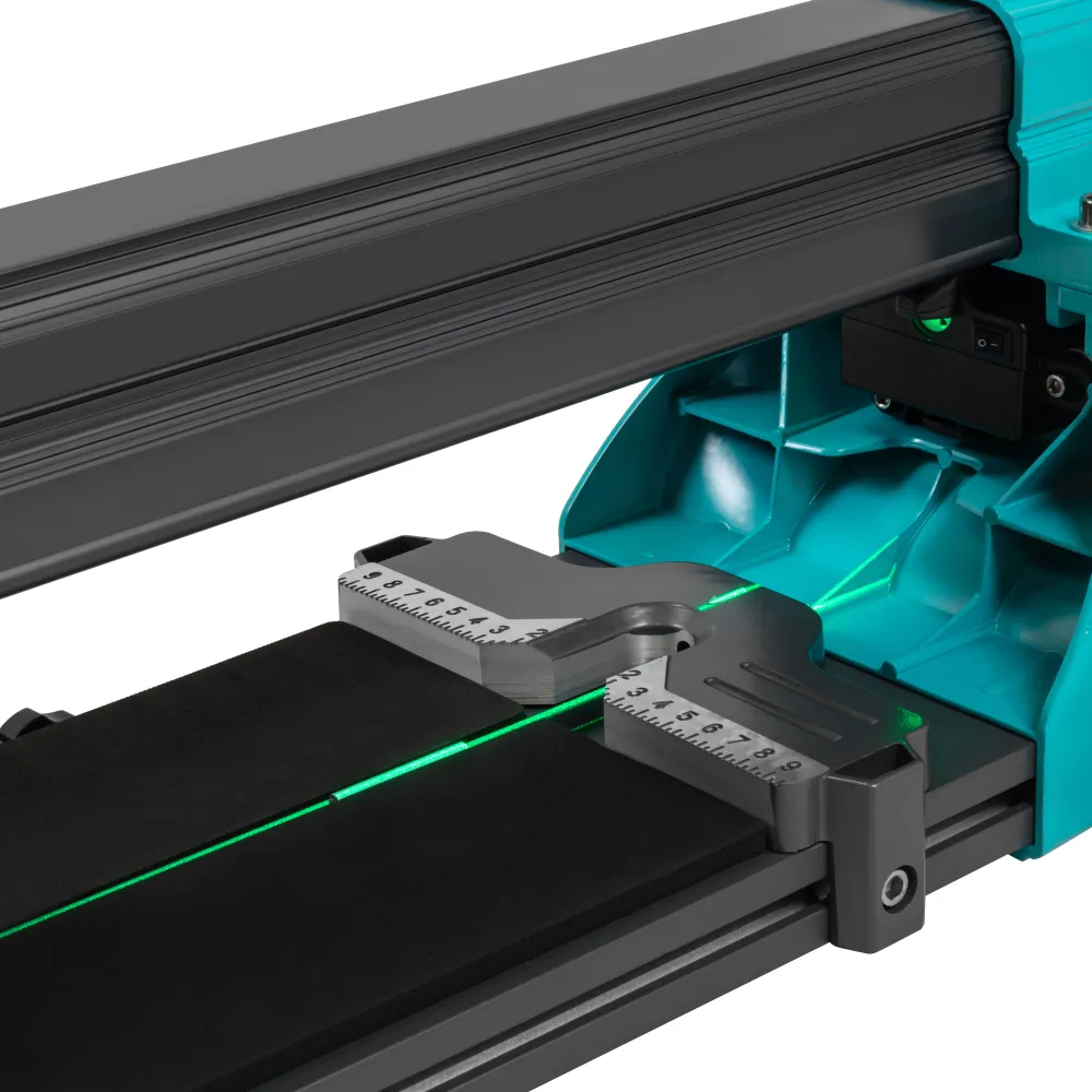 Плиткорез BIHUI оснащён линейкой с тремя боковыми отцентрованными линейками, которые позволяет выставить плитку без дополнительной разметки, регулируя ровность реза. Линейка оснащена боковым упором для серийной резки и фиксации заготовок под углом 45º.
