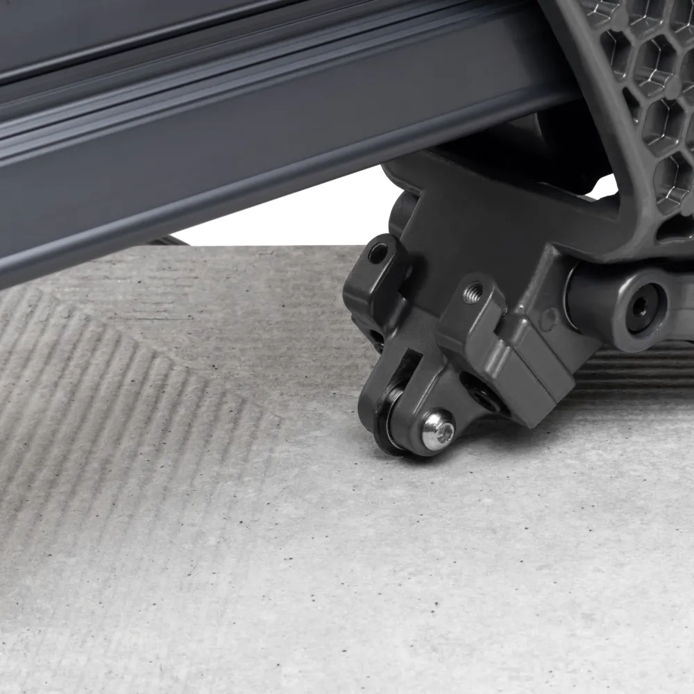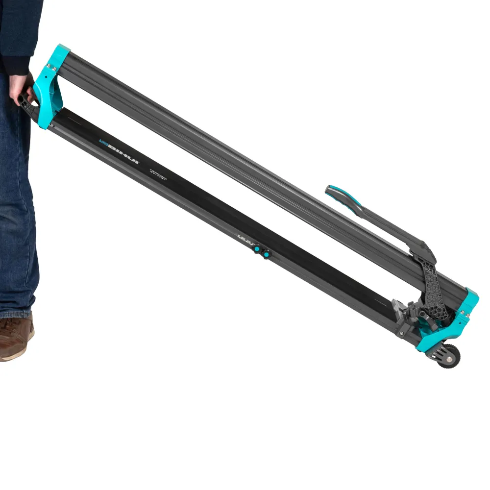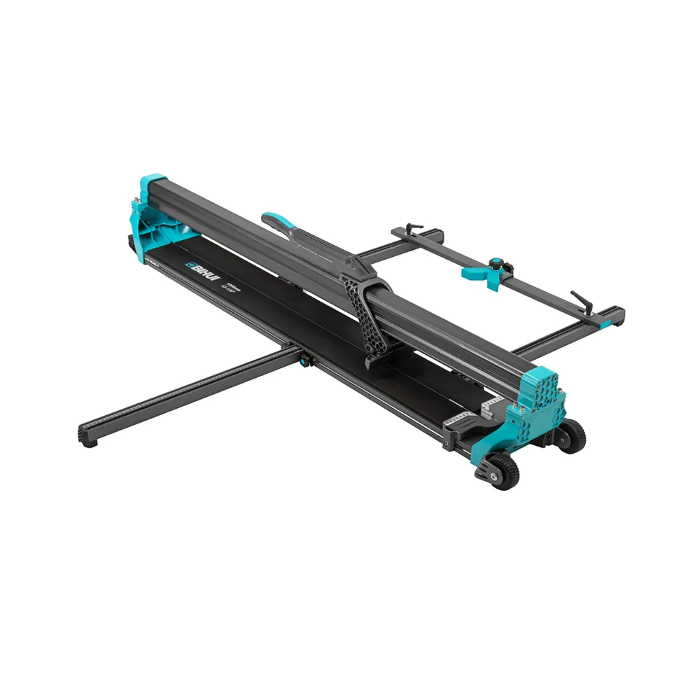 Плиткорез характеризуется очень жесткой направляющей конструкцией, имеющей профильную рельсовую направляющую с кареткой, расположенную в корпусе станка, которая гарантирует плавность хода. Жесткая основа и три боковые опоры длиной 65 см от линии реза обеспечивают стабильность во время резки.