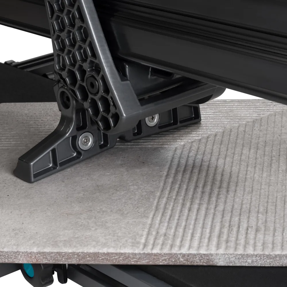 Рабочий стол изготовлен из высокопрочного сплава алюминия с множеством ребер жесткости, который облегчает станок без ущерба его надёжности и прочности. Рабочий стол покрыт высокопрочной мембраной, которая создает амортизирующий эффект при разделении плитки, также это позволяет уменьшить жесткость резки, что особенно важно при работе с хрупкими материалами и керамогранитом с очень высоким внутренним напряжением (перекалённым керамогранитом).