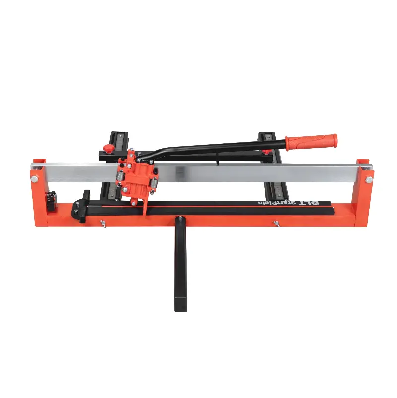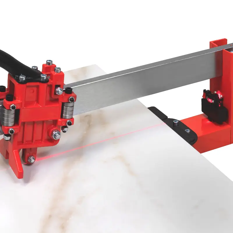 Плиткорез имеет большой прочный рычаг, который позволяет оказывать на заготовку максимальное давление при минимальном усилии. Устройство направляющей каретки плиткореза охватывает монорельс с четырех сторон и передвигается посредством шарикоподшипникового механизма, обеспечивая плавность хода. Рабочий стол изготовлен из стали, что делает станину станка очень прочной. Рабочий стол покрыт мембраной, которая создает амортизирующий эффект при разделении плитки, также это позволяет уменьшить жесткость резки, что особенно важно при работе с хрупкими материалами и керамогранитом с очень высоким внутренним напряжением (перекалённым керамогранитом).