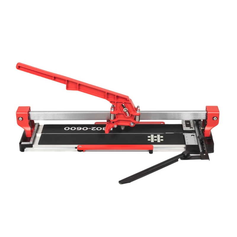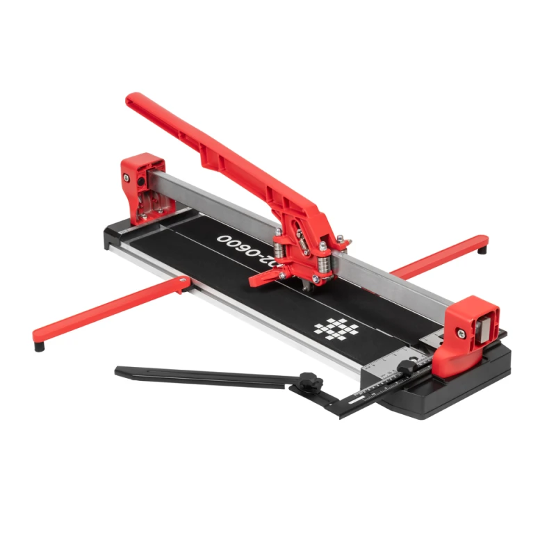 Плиткорез имеет большой прочный рычаг, который позволяет оказывать на заготовку максимальное давление при минимальном усилии. Разлом плитки происходит очень плавно, так как конструкция включает специальные «плавающие» стопы.