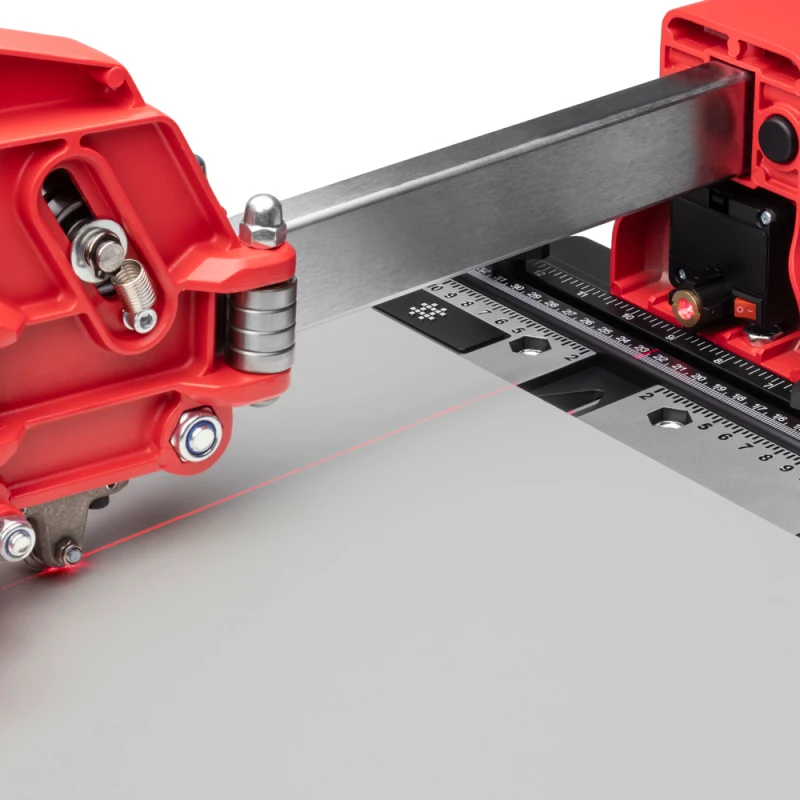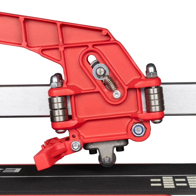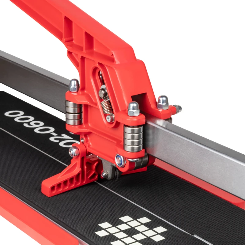 Устройство направляющей каретки плиткореза охватывает монорельс с четырех сторон и передвигается посредством шарикоподшипникового механизма, который состоит из 20 подшипников, что обеспечивает плавность хода.