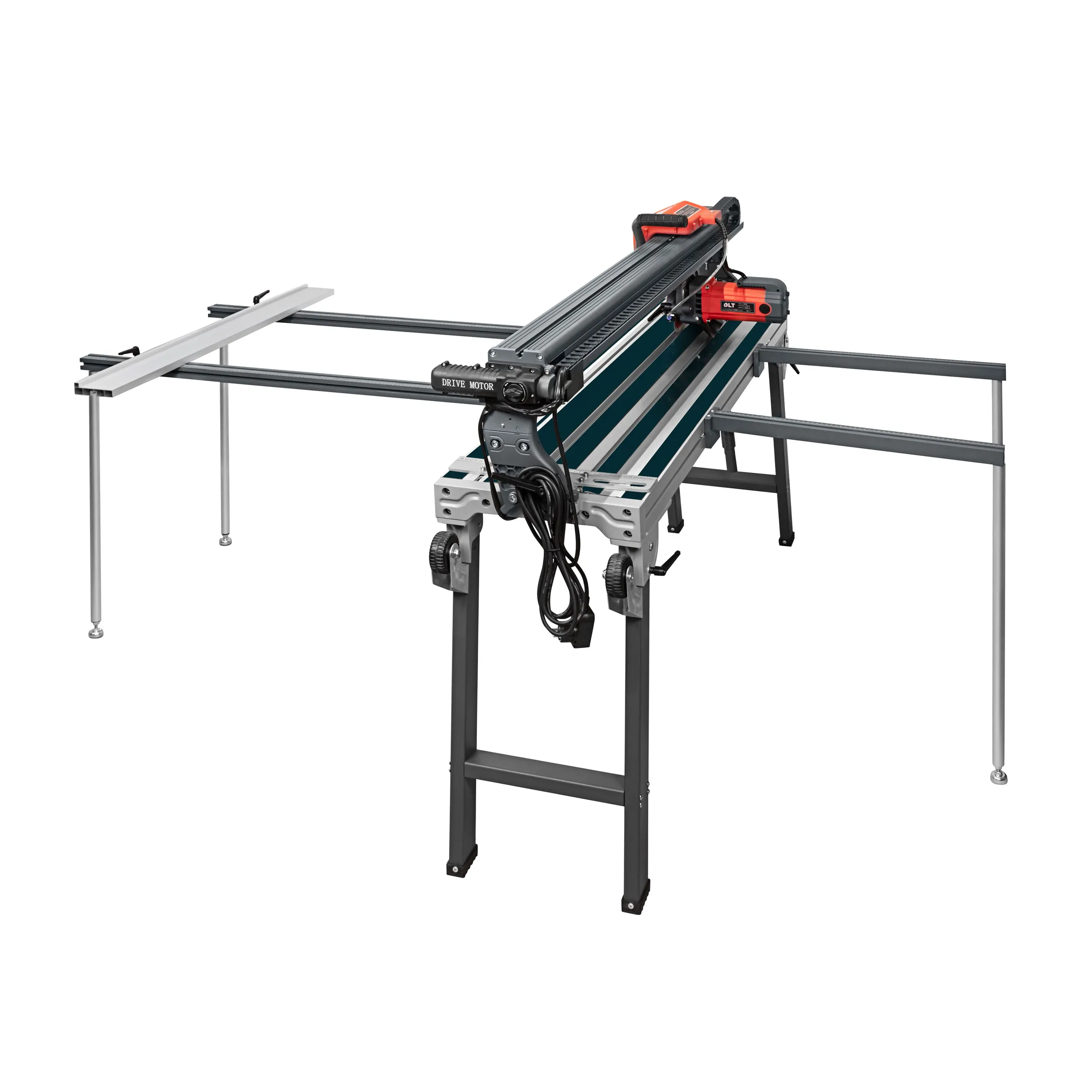 Электрический плиткорез DLT OptiTronic Auto версия MAX имеет расширенный рабочий стол и профильную рельсовую направляющую с кареткой расположенную в корпусе станка, рельсовые направляющие к примеру применяются для станков с ЧПУ и в оборудовании промышленного масштаба. Их задача заключается в обеспечении высокой точности. Выполняются из высоколегированной стали, отличающейся высокой прочностью и твердостью. Материал и конструктивные особенности позволяют без деформаций им переносить высокие нагрузки в течение длительного промежутка времени.