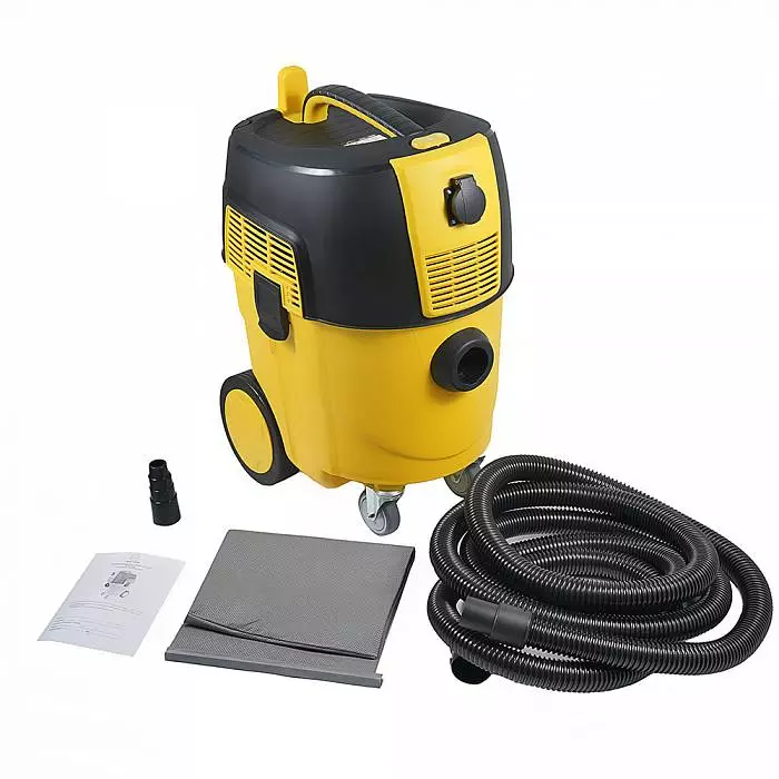Пылесос оснащён розеткой для подключения электроинструмента с допустимой нагрузкой до 2000 Вт, что делает его удобным помощником при работе с шлифмашинами, пилами и другим строительным оборудованием. Высокая производительность (до 2000 л/мин) обеспечивает чистоту рабочего пространства и защиту здоровья оператора.
