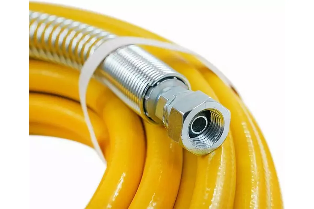 Шланг сделан с полиамидным сердечником, на концах шланга присоединительные ниппели для прикручивания шланга к краскопульту или к окрасочному аппарату.