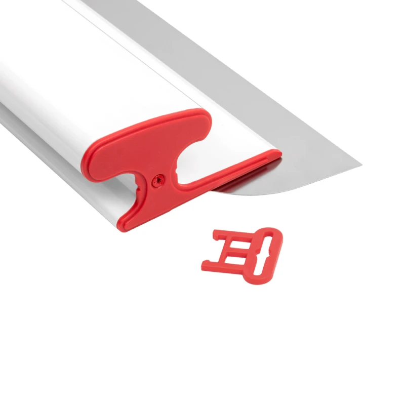 Качественное эластичное лезвие шпателя изготавливается из легко очищаемой, высокоустойчивой к истиранию нержавеющей стали и является съемным, благодаря чему его можно заменить на новое, тем самым увеличив срок службы инструмента. Лезвие данного шпателя имеет широкую рабочую поверхность с прямыми краями для более удобной работы с углами.