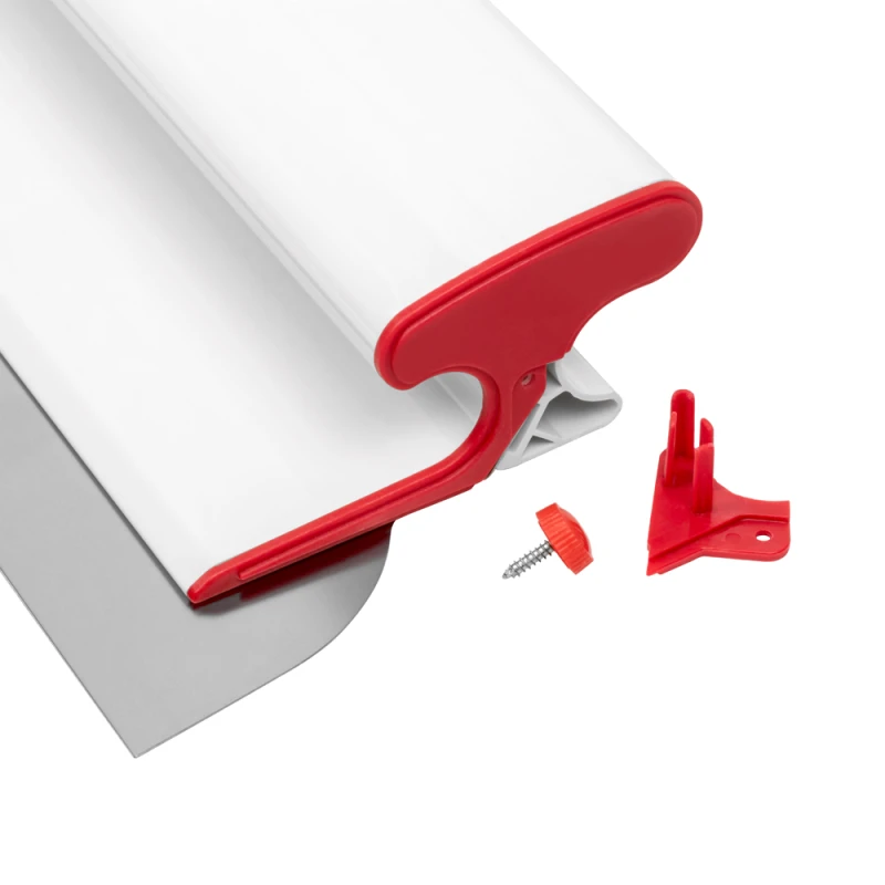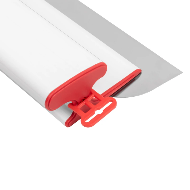 - Шпатель выполнен в практичном белом цвете. Это не только эстетически приятное решение, но и сугубо практическое: при работе со шпатлёвками и светлыми составами шпатель долгое время визуально сохраняет чистый и опрятный вид, что важно для комфорта и аккуратности на рабочем месте.