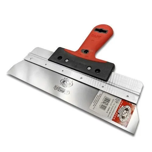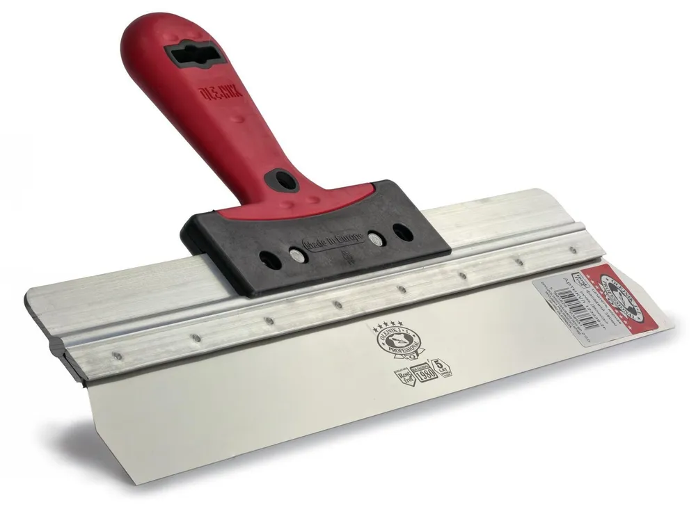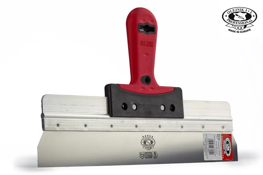 Рабочая часть шпателя изготовлена из кислотостойкой австрийской нержавеющей стали, встроена в анодированный алюминиевый профиль для усиления и обеспечения идеально прямой рабочей кромки, что не дает лезвию выпадать с профиля в процессе работы.