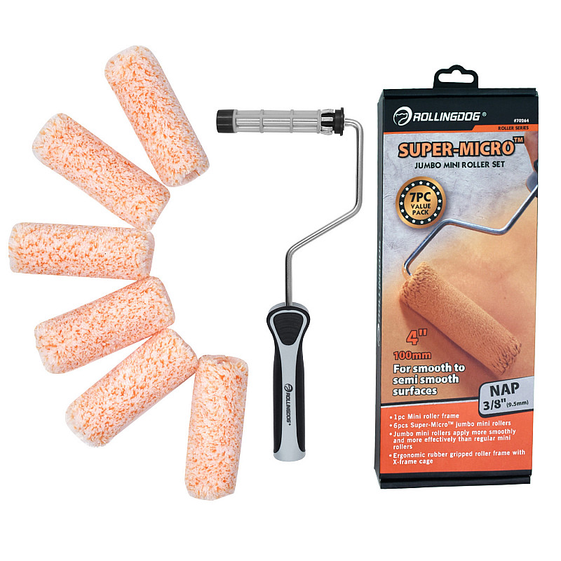 Комплектация: мини-валик Super-Micro™ Jumbo (100 мм), ворс 9,5 мм - 6 шт, бюгель,100мм, Ø6мм, каркас 18мм - 1 шт.