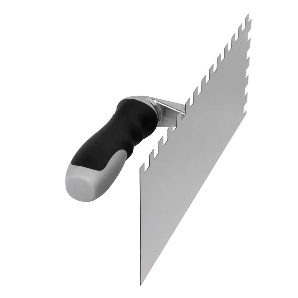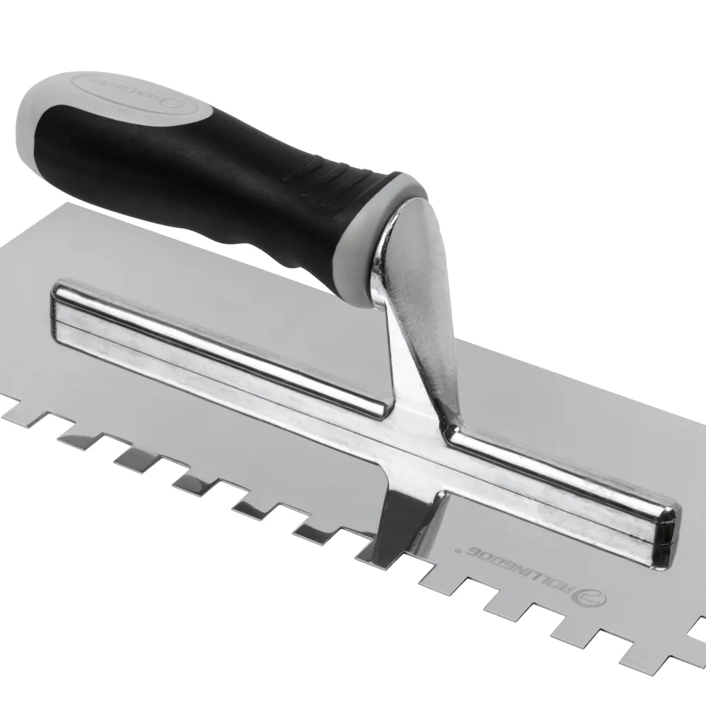 Эргономичная рукоять с нескользящим покрытием обеспечивает удобный захват и комфорт во время работы, а зеркально отполированная рабочая часть снижает риск прилипания материала к полотну и обеспечивает гладкое покрытие без неровностей.